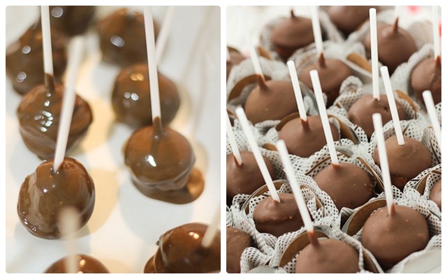 Depois mergulhe as bolinhas no chocolate, e coloque para gelar de novo. E cuidado para não atacar a travessa de chocolate derretido. Eu sei que é tentador, mas você consegue!