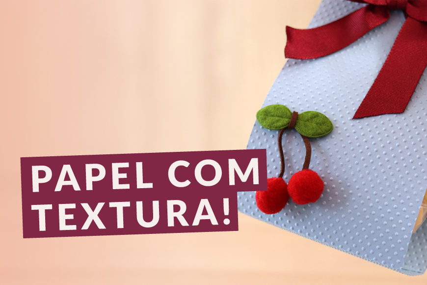 Ela faz parte de uma coleção de embalagens com tema confeitaria, pensada tanto pra quem trabalha com doces quanto pra quem ama uma mesa posta caprichada nas festas. E o destaque dela é a textura feita com a Mimo Embossing, que transforma qualquer papel comum em algo extraordinário!