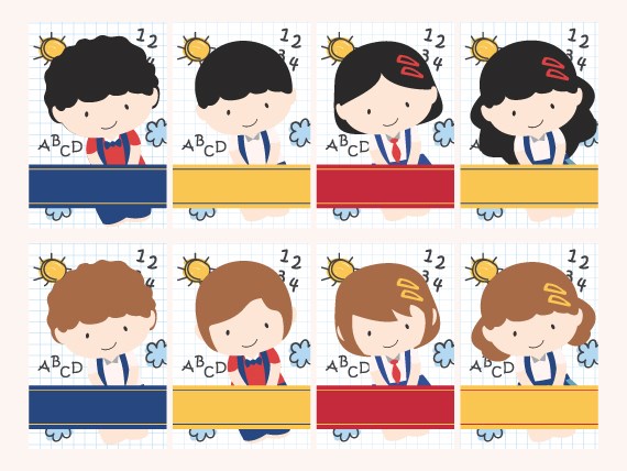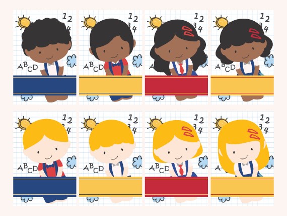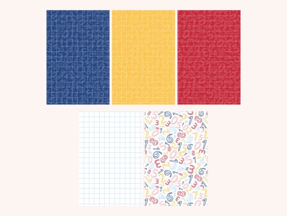 São 16 modelos de capas, 02 modelos de miolo e 1 modelo de cartela de adesivo.