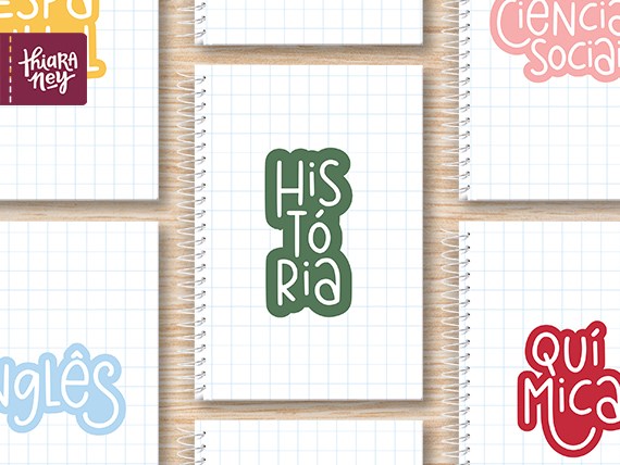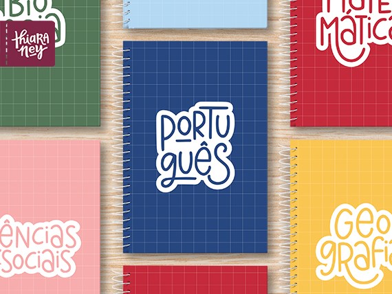 Miolo, capas, cartela de adesivo e estampas para produzir caderno.