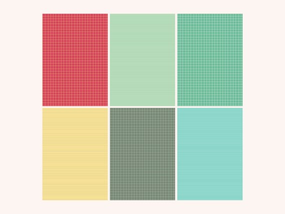 Miolo, capas, cartela de adesivo e estampas para produzir caderno.