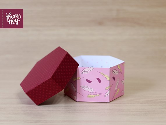 - Caixa no tamanho 5,6 x 6 x 5,6 cm